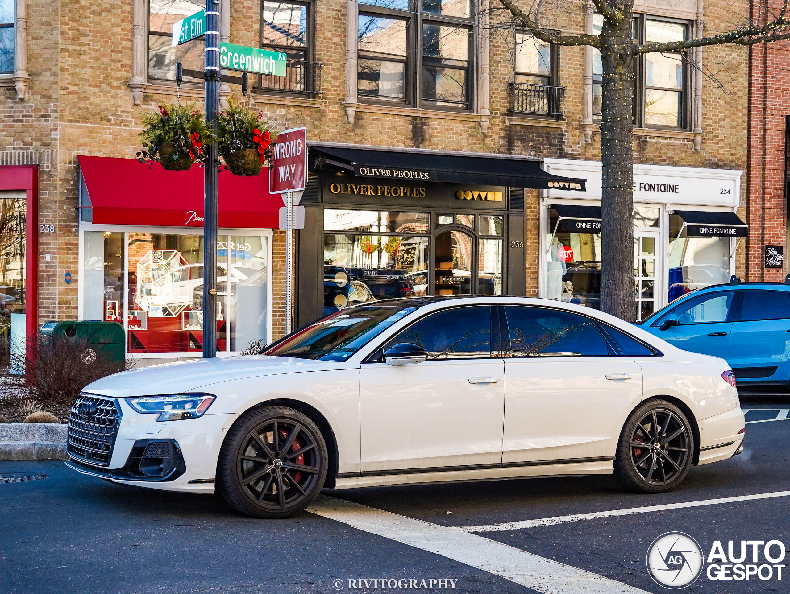 I found this 2022 Audi S8 turning onto West Elm Street and later driving down Greenwich Avenue on 2/3/2024.