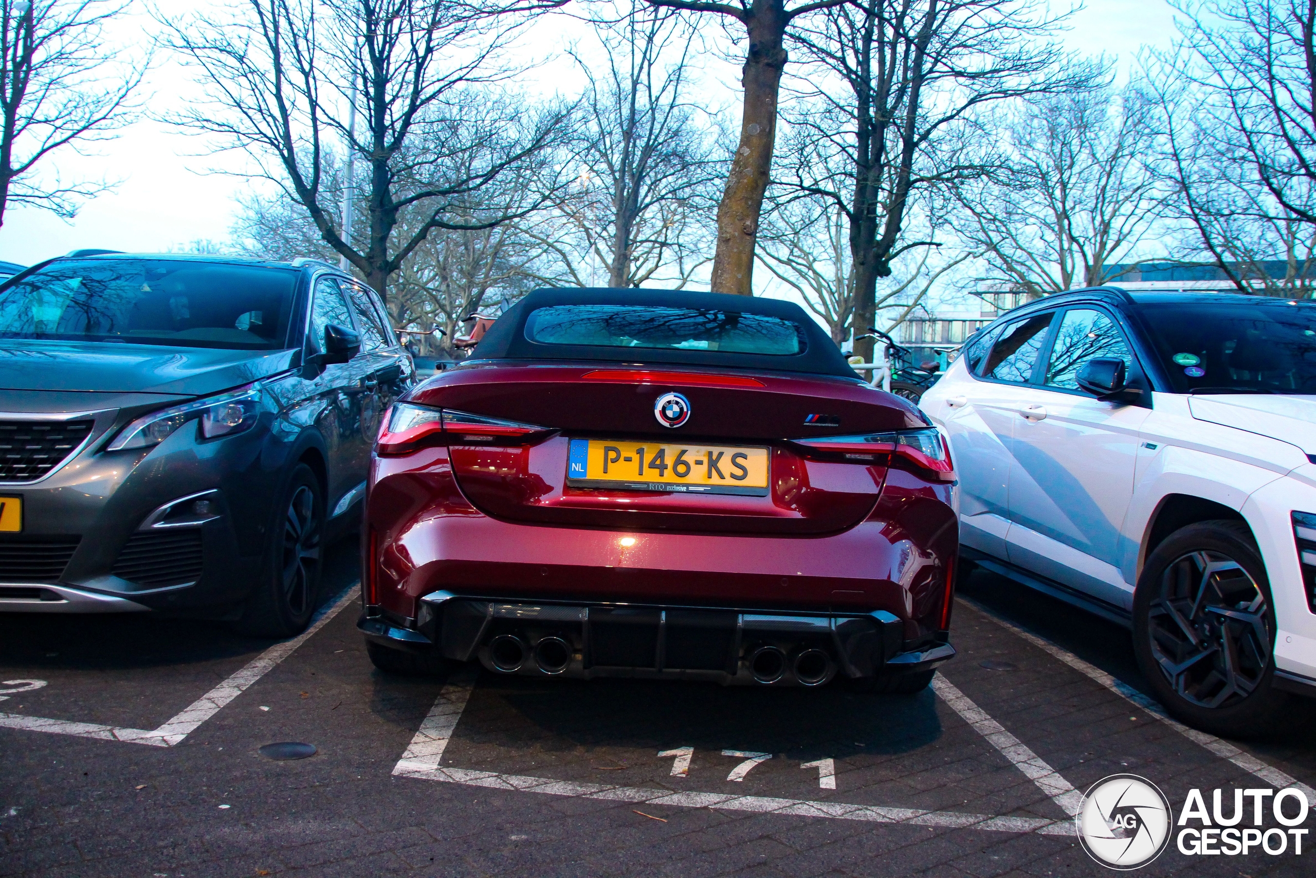 FC Utrecht - Sparta Rotterdam. "Kneitervet", "Blubberdik" of "Chique de Friemel". Mooie kreten die ik wel eens lees op AG en past denk ik ook wel bij dit ontzettend mooi, samengestelde exemplaar van deze BMW M4 cabrio. Waar het bij FC Utrecht weer misging op het veld die dag was het voor mij wel een paar keer raak. Iets verderop kon ik mijn eerste BMW M4 CSL spotten, maar dit was eigenlijk nog veel gaver. Een diep wijnrode exterieur kleur op deze Bimmer i.c.m. de zwarte velgen, ook het gele NL-kenteken en het speciale "50 Jahre ///M Motorsport"-logo maakt het tot een uniek exemplaar. Het schemerde wel al die avond maar met uitgezoomde foto's en polfilter eraf nog redelijk gelukt zo. Oost, Utrecht.