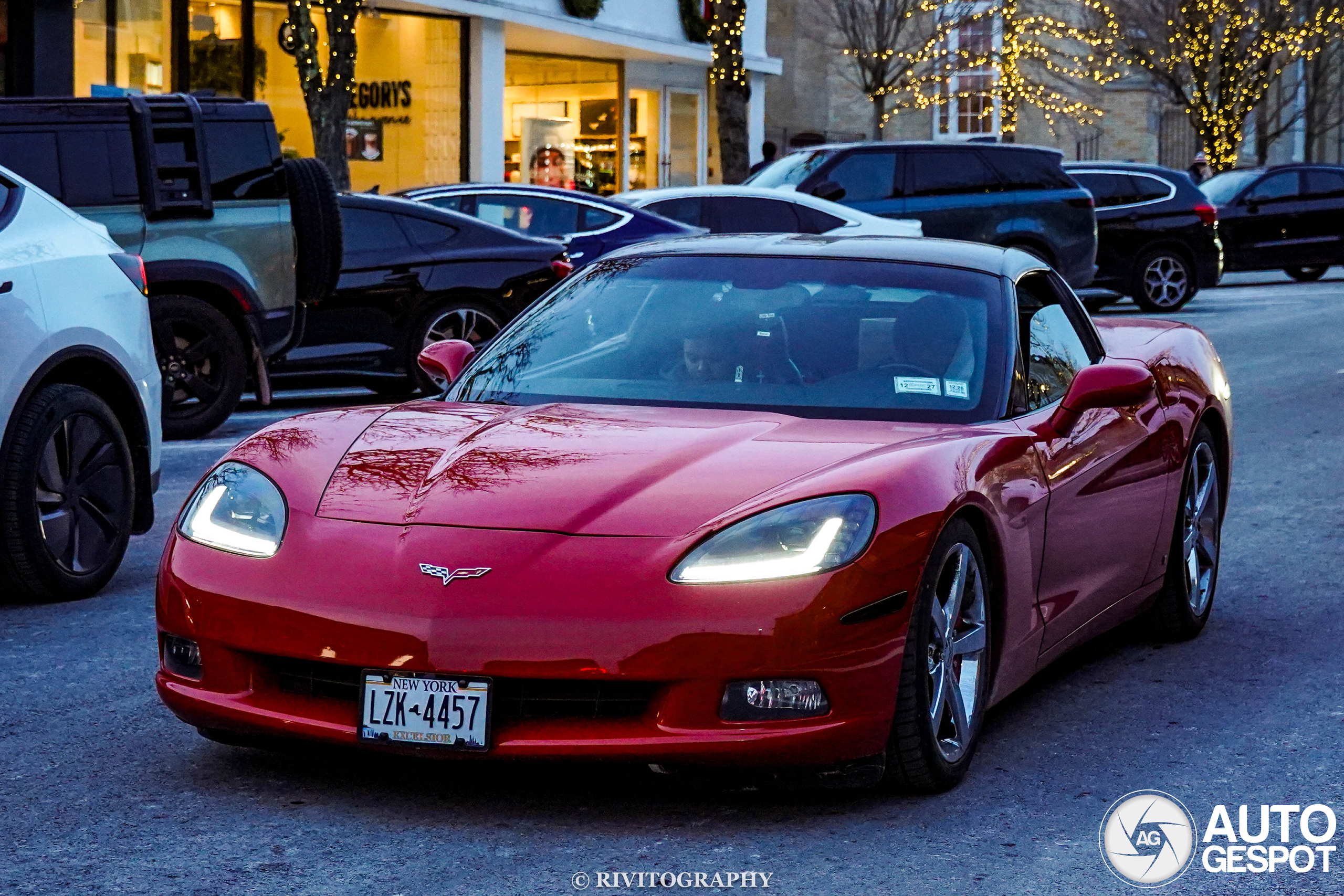 I found this 2008 Chevrolet Corvette C6 driving down Greenwich Avenue along with a blue 2003 Chevrolet Silverado 1500 on 1/3/2026.