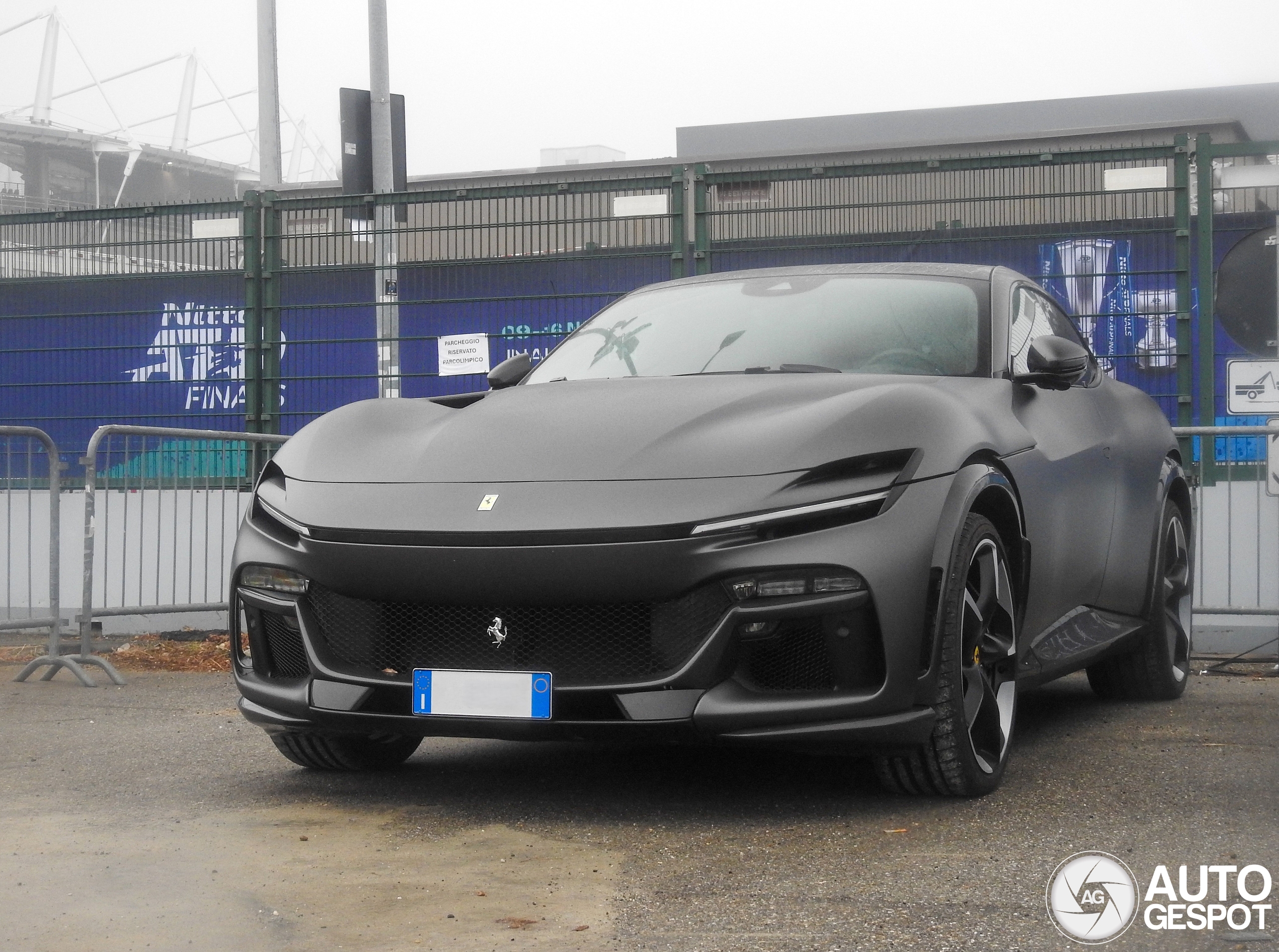 November 2025 Last year I've spotted two Purosangues at ATP Finals and this year I've managed to spot another one, this very cool (and brutal) matte black example. The saturday spotting session, during the semi-finals was without doubt the most successful day of this year's ATP Finals, both talking about the number of spots (12!) and the quality, this Ferrari "SUV" was my last spot at the parking lot of the swimming pool for that day. Plates are blurred on request of that parking lot's staff but I've sent them to crew of AG as requested by the site's rules.