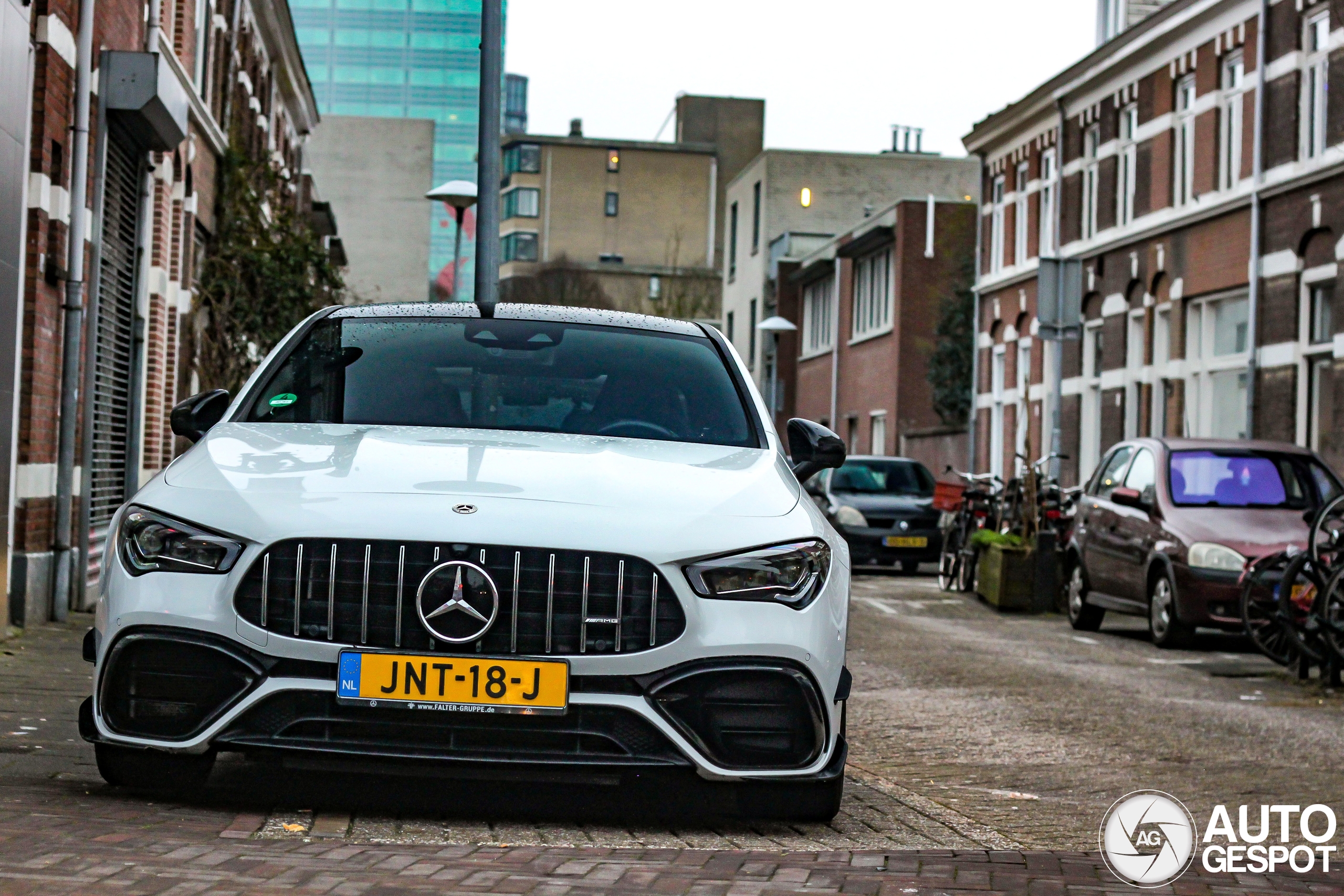Een fraaie, nieuwe witte CLA 45 S voor de site vanuit een multiculturele wijk in Utrecht. Deze kwam op een fietsroute terug naar huis tegen op de drukke Kanaalstraat. Lombok, Utrecht.