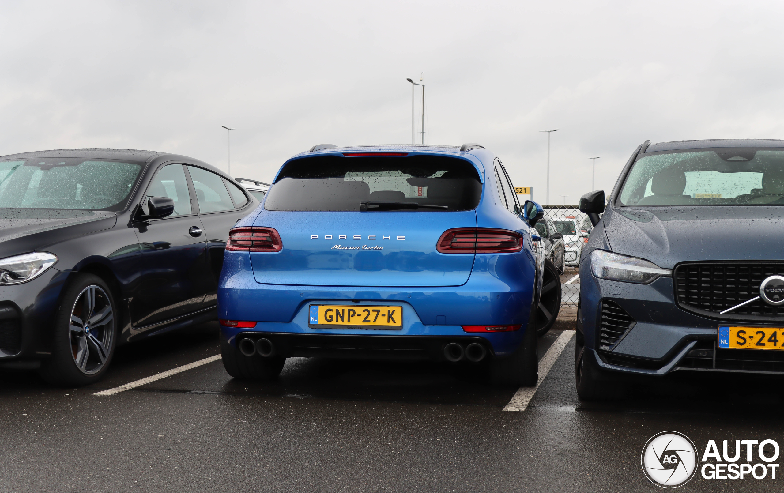Een spotje van afgelopen lente, maar van mooi weer niks te bekennen. Gelukkig was 'ie blauw, dat knalde er nog wel lekker uit. En een personal first blijkbaar, pas de eerste Macan Turbo MkI die ik upload. En gelijk ook een nieuwe voor AG.