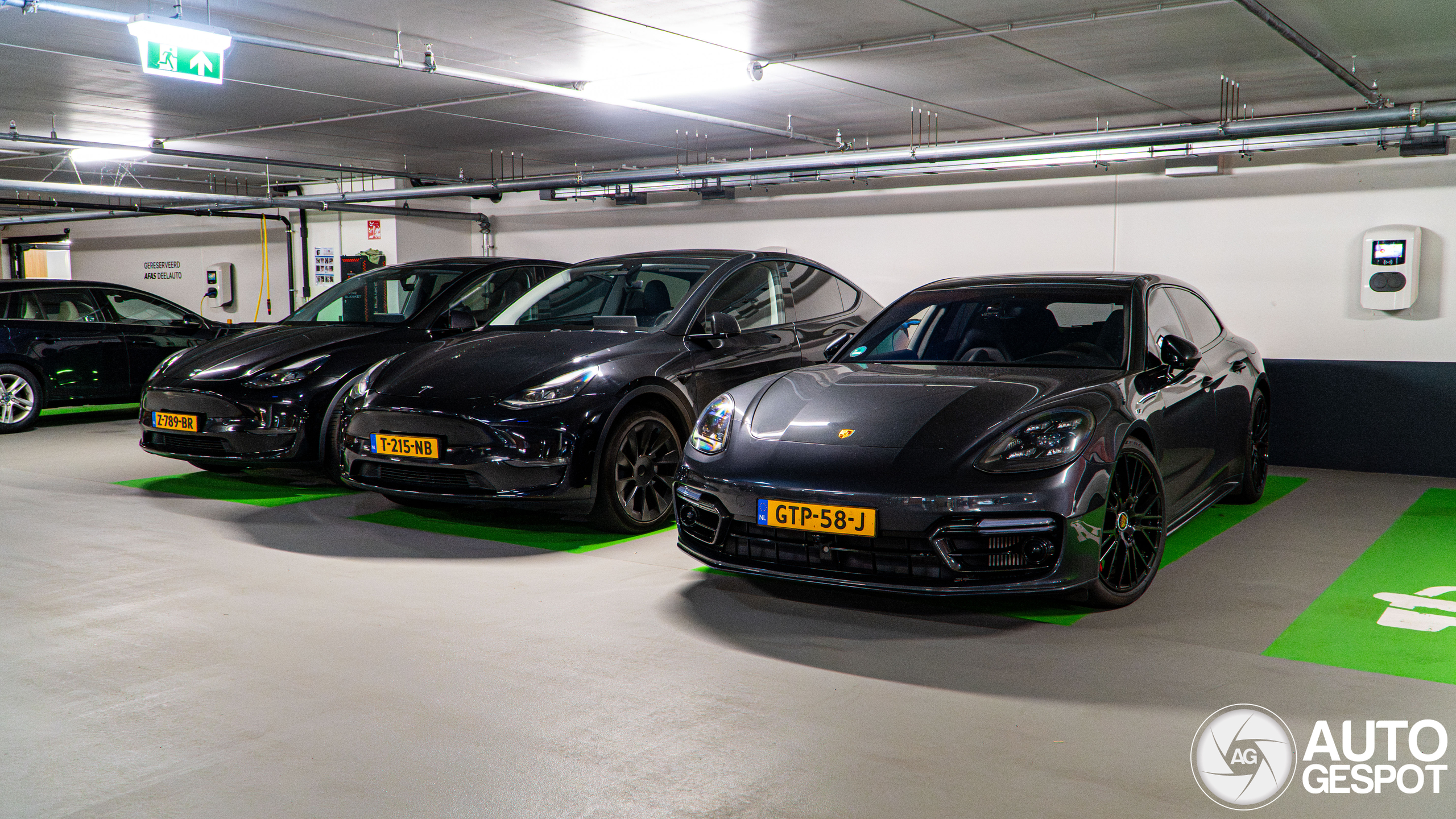 Toffe Panamera, altijd leuk een Turbo S. Leuke combo zo met die twee Tesla’s.
